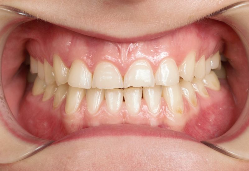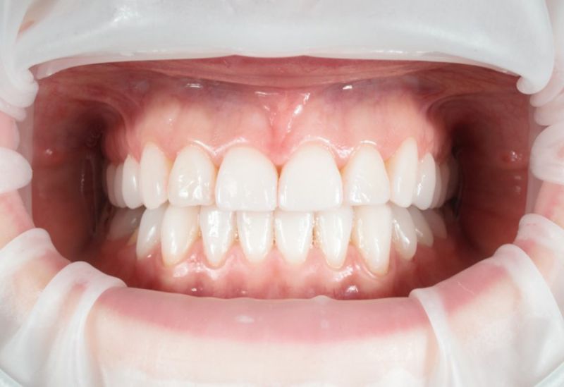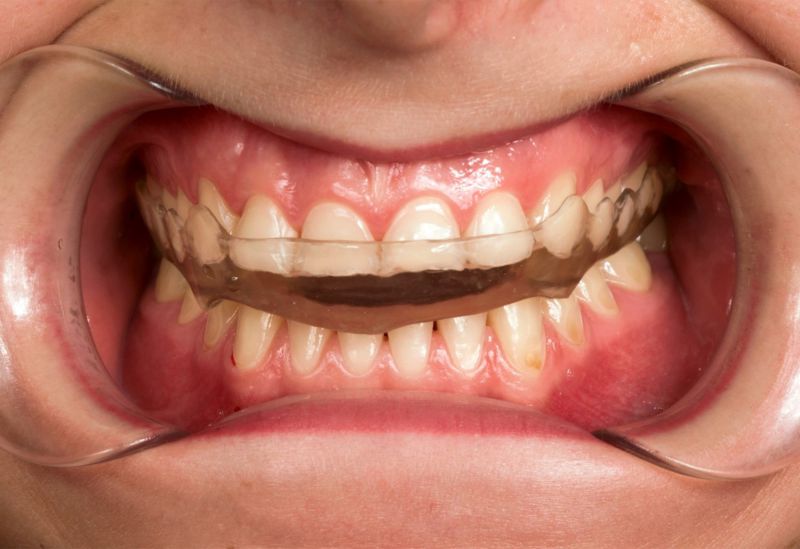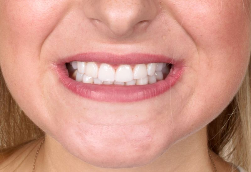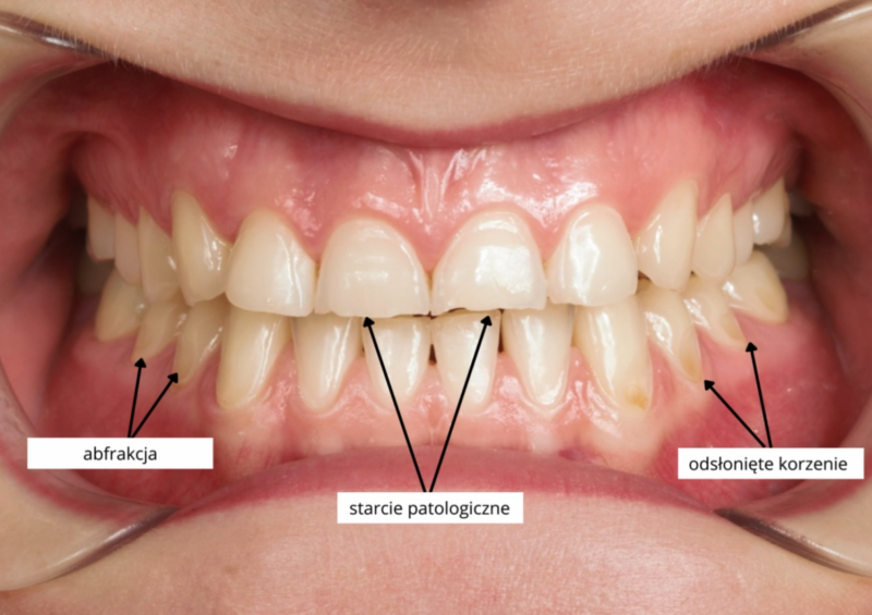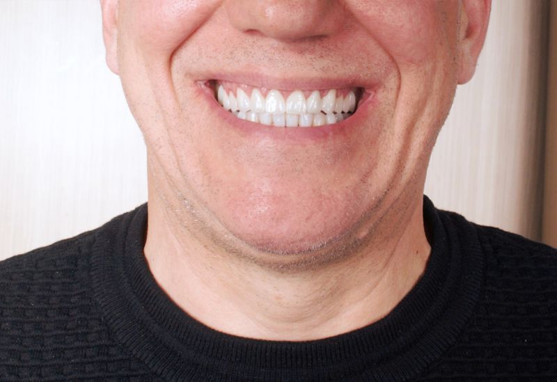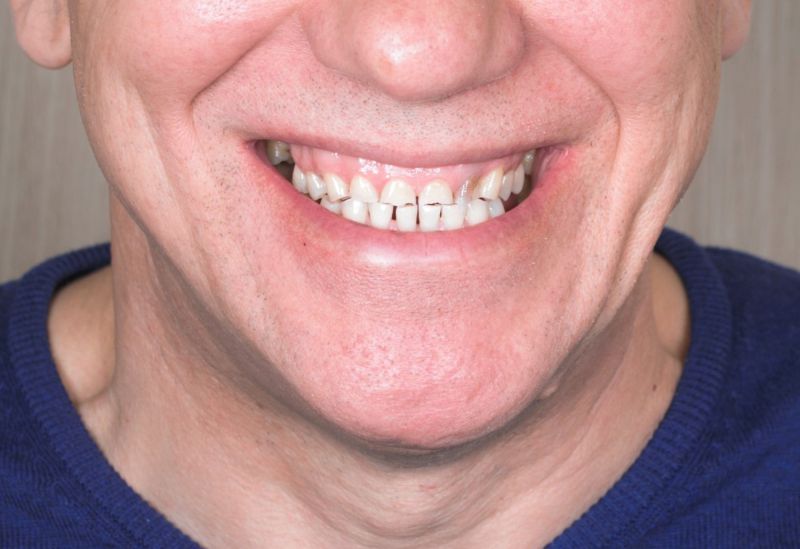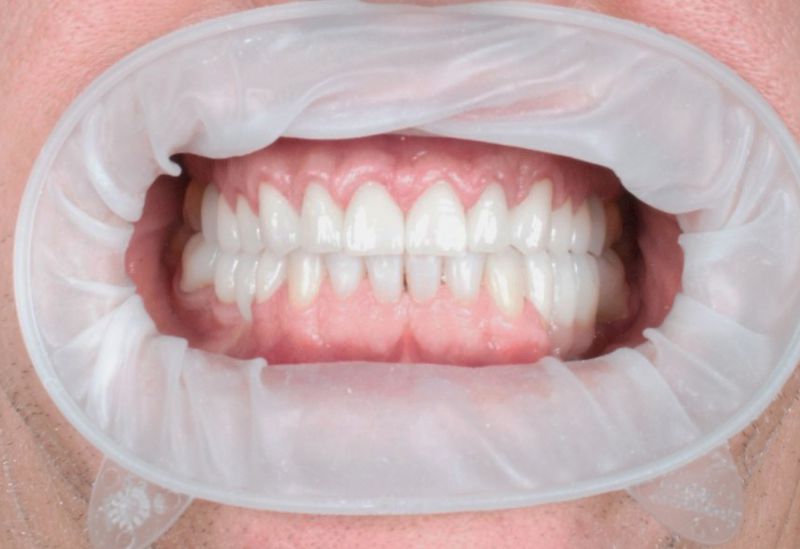 W Pana przypadku mieliśmy do czynienia z nadmiernie startymi zębami. Z powodu rozlegle zniszczonego uzębienia Pacjenta, należało przeprowadzić kompleksowe leczenie, które pozwoliło na przywrócenie estetyki uśmiechu, a także funkcjonalności zgryzu. Ostatnim aspektem leczenia było działanie prewencyjne, zapobiegające ścieraniu zębów. Do tego celu stosowana jest orteza, którą wykonuje się na zęby górne i użytkuje w ciągu nocy. Zabezpiecza ona zęby przed szkodliwym działaniem zgrzytania i nadmiernym zaciskaniem przez co wykonana praca protetyczna zostaje zabezpieczona, a pacjent może cieszyć się nowym, pięknym uśmiechem.
